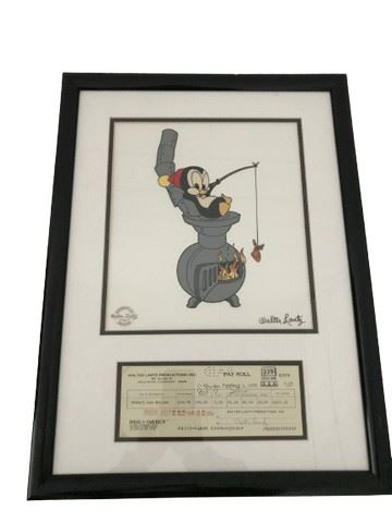 Walter Lantz “Hot Lunch“ serigraph cel, and employee check Framed -authentic