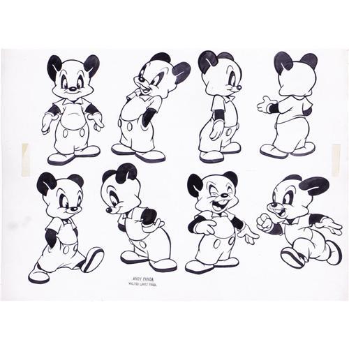 <B>Walter Lantz Model Sheet Original Art, group of 6 (Walter Lantz Productions, circa 1940s).</B></I> Andy Panda, Miranda Panda, Wally Walrus, Lil Eight Ball, Romeo, and Milo star in these six hand-drawn model sheets produced by Walter Lantz Productions. Each sheet measures 14.25" x 10.75", and, aside from some paper tanning, they average in Very Good condition.<BR><BR><b>Shipping:</b> Small Flat (<a target="_blank" href="http://www.heritageauctions.com/common/shipping.php">view shipping information</a>)