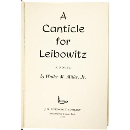 <B>Walter M. Miller, Jr.: <I>A Canticle for Leibowitz</B></I></B></I> (New York: J.B. Lippincott Company, 1960), first edition, 320 pages, jacket designed by Milton Glaser, boards with cloth shelf back, 8vo (5.25" x 8.25"), dust jacket. Near fine book has lightly bumped corners, in a near fine unclipped dust jacket. A 1961 Hugo Award winner. A great copy of this important book, which is number 30 on David Pringle's list of 100 Best Science Fiction novels.<BR><BR><b>Shipping:</b> Books & Catalogs (<a target="_blank" href="http://www.heritageauctions.com/common/shipping.php">view shipping information</a>)