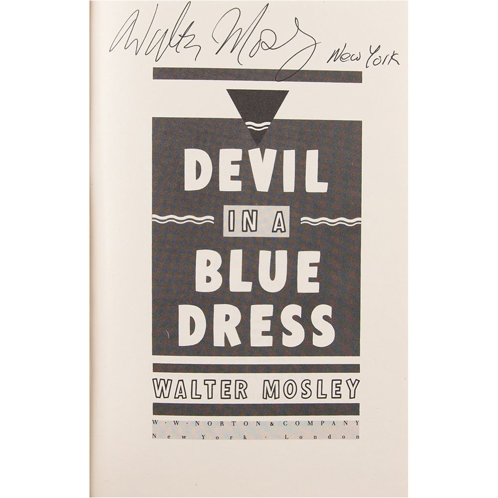 Two early copies of Devil in a Blue Dress, the debut novel by Walter Mosley—a first edition published by W. W. Norton & Company in 1990, hardcover with dust jacket, signed on the title page in black ink, “Walter Mosley, New Yorkâ€; and an advance reader’s copy, softcover with pictorial wrappers, signed and inscribed on the half-title page in black ink, “For Matt, This is my favorite edition of the book, Walter Mosley, March 5, 1991.†In overall fine to very fine condition, with light creasing to the softcover spine.
