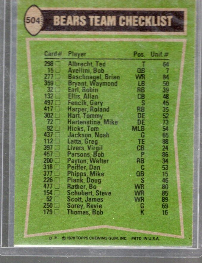 Walter Payton Bears Team Leaders 1978 Topps #504