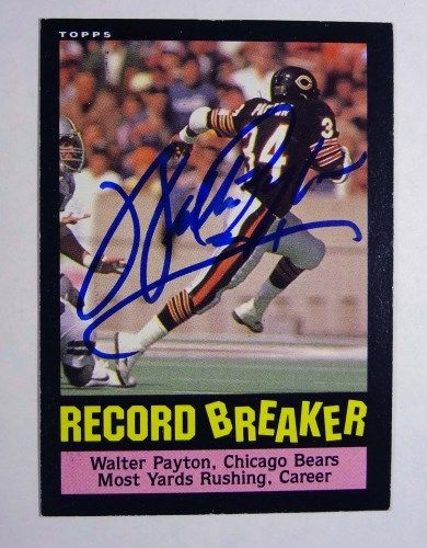 1985 Topps Card #6 Autographed by Walter Payton NM w/COA Est. Value $125.00 - $150.00.