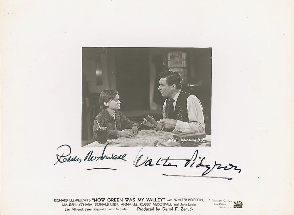 Glossy 10 x 8 20th Century Fox promotional photo for How Green Was My Valley, signed in black felt tip by McDowall and Pidgeon. In fine condition.