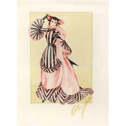 (MGM, 1939) Sketch of Leigh wearing a black and peach period dress with picture hat, accomplished in gouache and watercolor on board, and signed at the lower right. Measures 15 in. x 20 in.