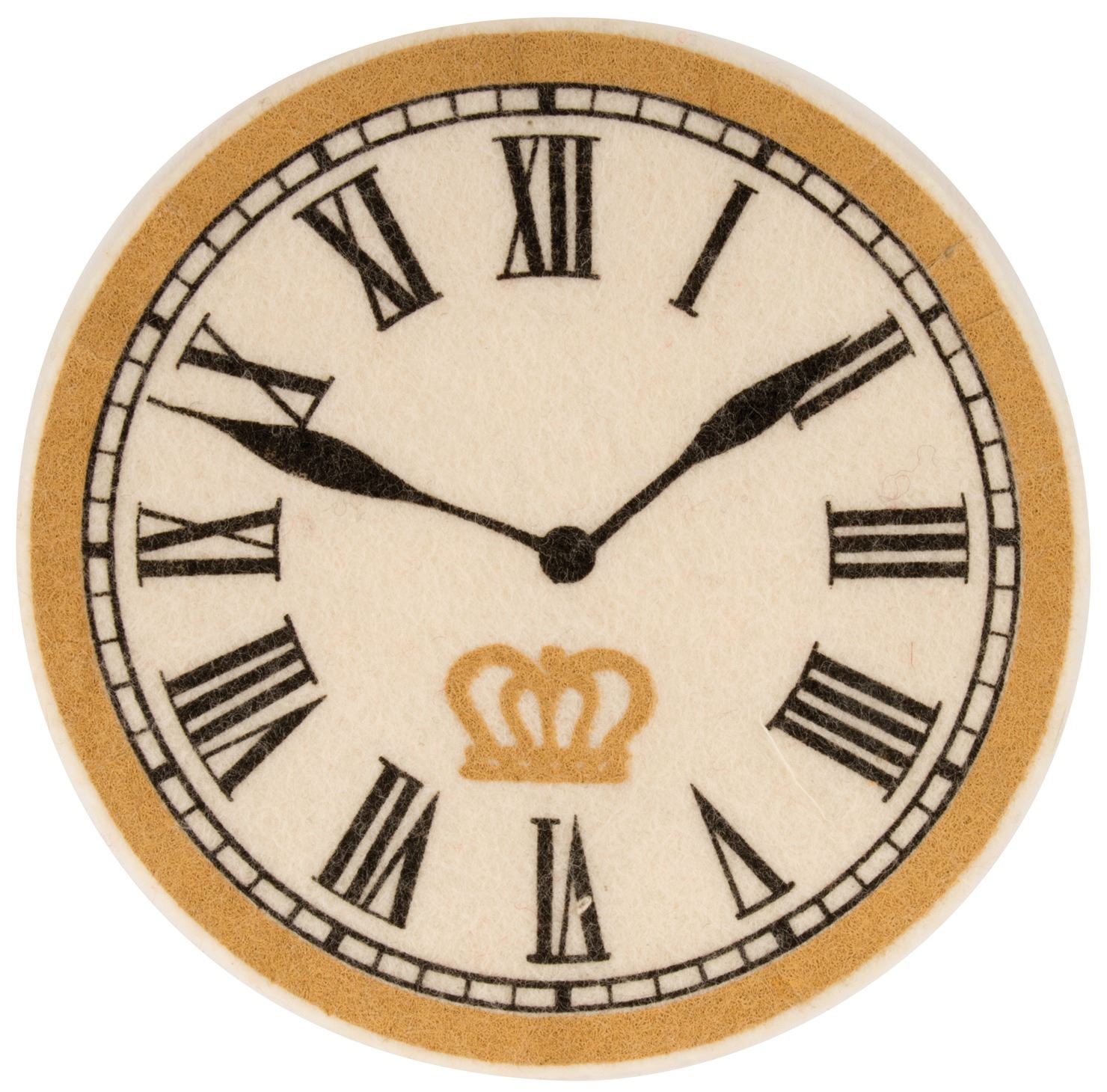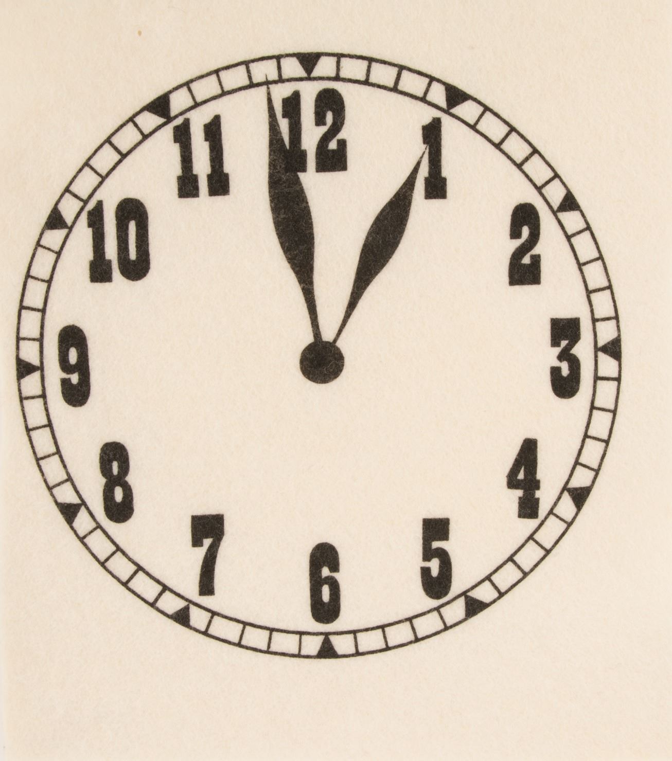 93. Walter Slezak "The Clock King" (4) clock face patches from Batman. (ABC TV, 1966-1968) Vintage original (4) printed felt clock patches including (1) black printed 6.5 in. round black clock face printed on 7.5 x 8.75 in ivory felt swatch and (3) gold and black 5 in. round printed clock faces with 2-trimmed and one on .5 x 8.75 in ivory felt swatch. These production made patches were created for use as costume accessories for "The Clock King" (Slezak) as well as his henchmen. Exhibiting minor age and handling. In vintage fine to very fine condition. Provenance: Henchman patches sold Profiles in History, Auction 22, Aug 2005, Lot 421. $1,000 - $1,500