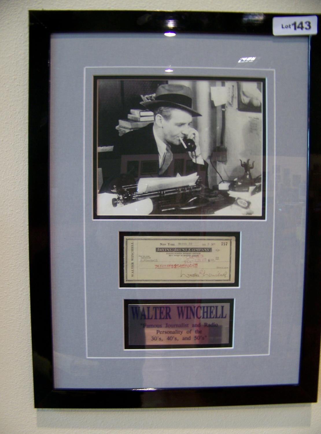 Walter Winchell handsigned cancelled check. Framed w/ photograph Check #757 $25.00 03-33-1935