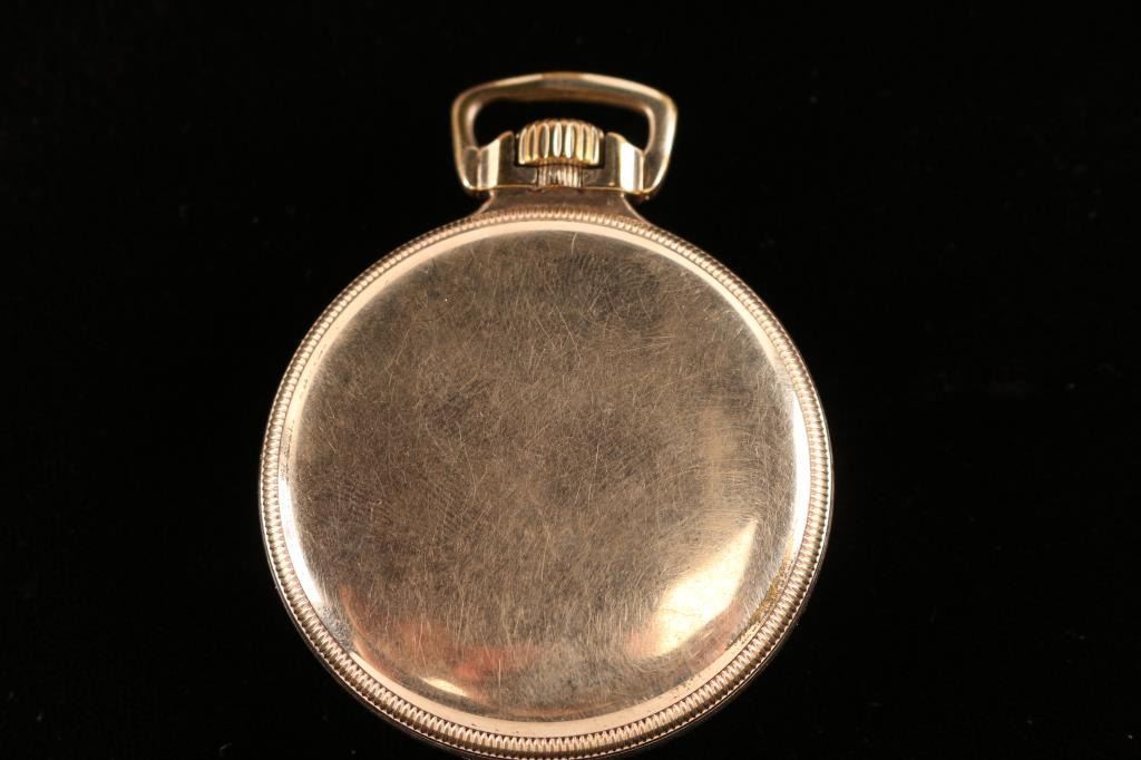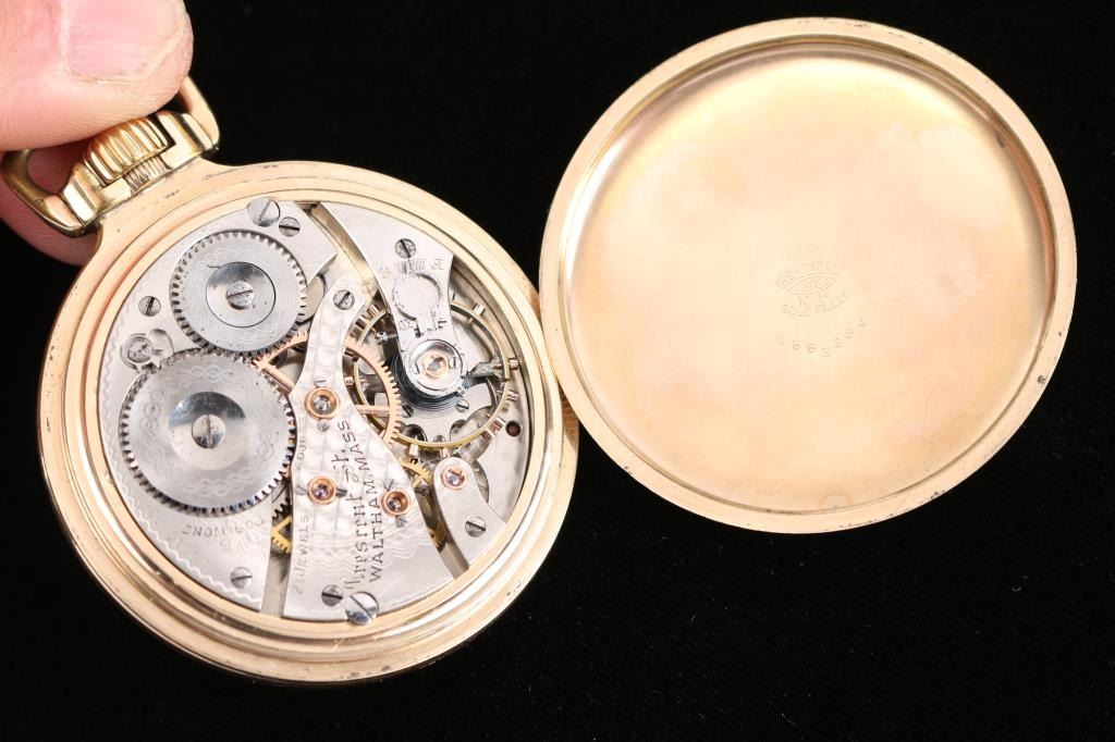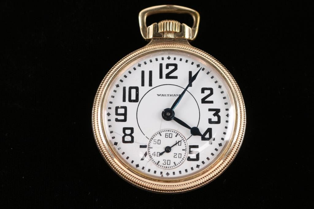 Waltham Model 1908, Crescent St. Grade, 21 Jewel nickel movement, bridge plate, 16 size. Serial Number 18042892, manufactured 1910. The movement is housed in a J. Boss/Keystone case with brilliant 10K yellow gold fill. In good working order, has a couple of minor scratches on the face, nice nitre blue hands.