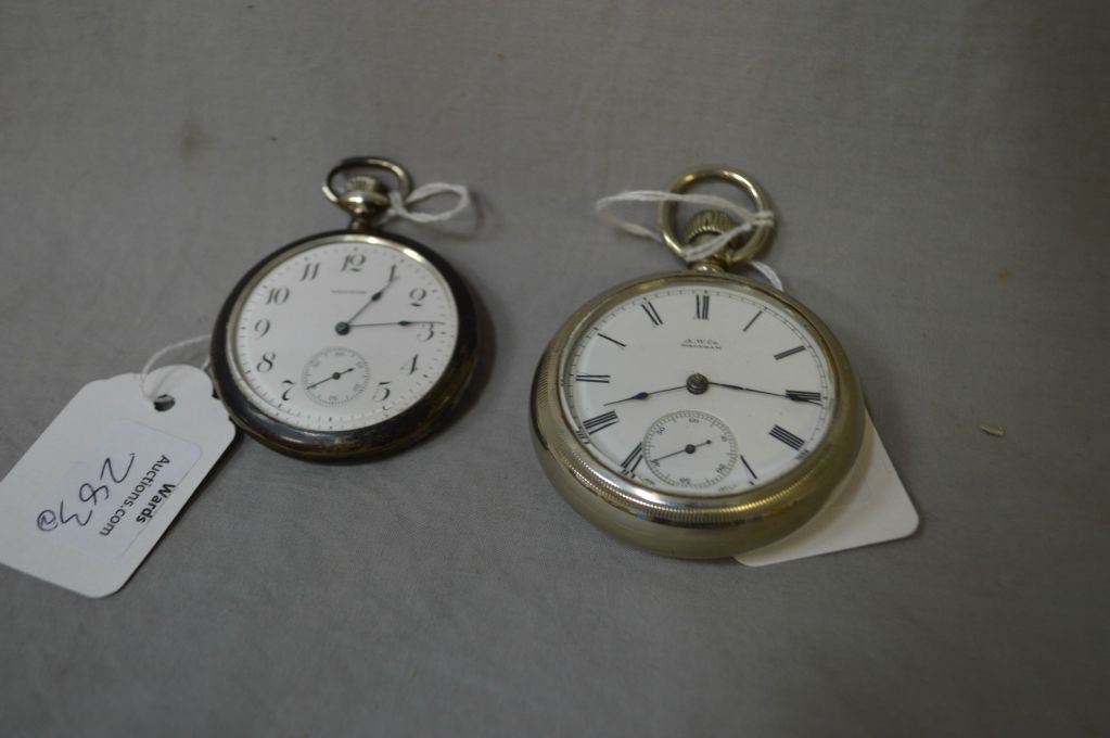 Waltham 7 jewel sterling silver 1950's pocket watch with Arabic dial and second sweep, working at time of cataloguing and a Waltham silveroid cased pocket watch with Roman numerals and second sweep