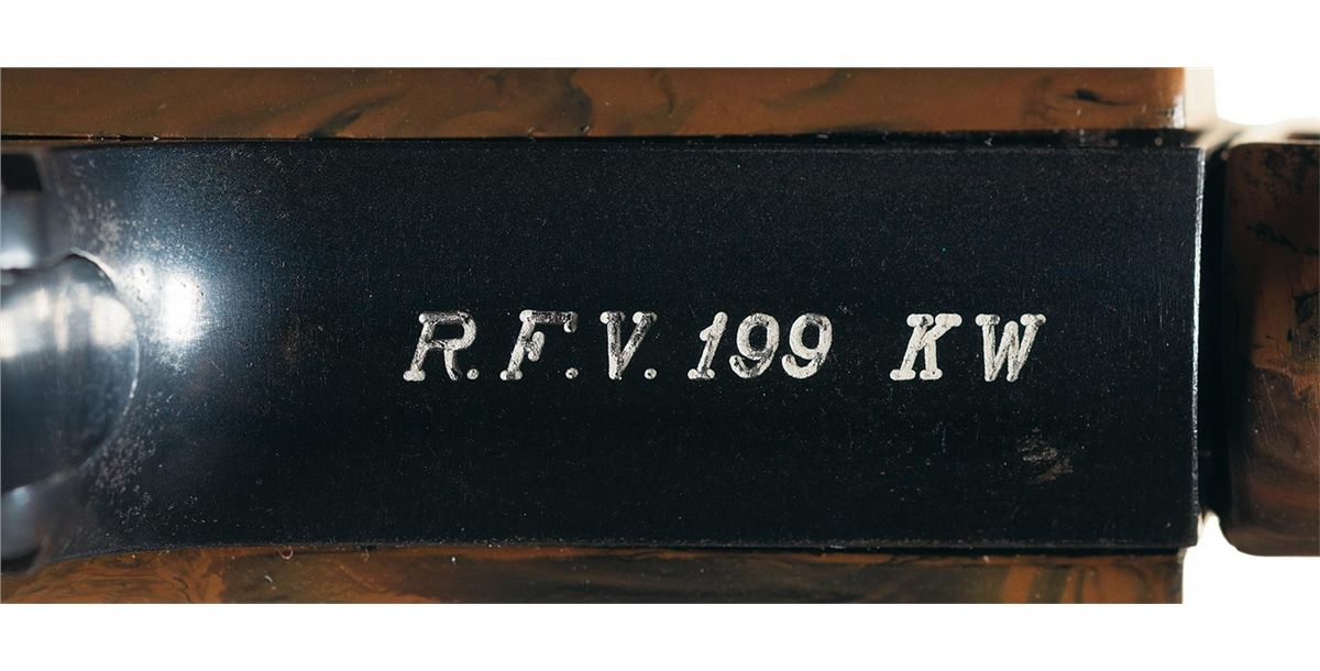9. GUARANTEE. All property offered for sale is as is, where is. All sales are final. There will be no refunds and no exchanges. Rock Island Auction does not guarantee or make warranties on any lot sold. The bold headline of the description is the only written statement Rock Island Auction Company will guarantee as correct. Descriptions in the catalog are opinion. They are written as an aid to potential bidders. We acknowledge that there may be errors in what is written beyond the bold headline description. We recommend you to personally view any item you bid on or have an acknowledged expert view the item. Statements starting with the word condition are opinions, not statement of fact or guarantees. If a dispute about a lot arises it is the buyer’s responsibility to provide a written statement by an acknowledged qualified expert within 30 days after the auction that the bold headline is in fact incorrect. If the expert’s statement is indeed correct Rock Island Auction Company will make a full refund upon return of merchandise. Providing the merchandise is returned in the same condition it was received. We must again reiterate the guarantee is only on the bold headline of the description and Rock Island Auction Company will only honor this guarantee within 30 days of an Auction. This right to return an item purchased at an auction shall be expressly limited to situations where errors occurred in the bold headline description of an auction item and such 30-day return provision shall not apply to a return of an auction item for any other reason. Rock Island Auction Company will have no further obligation including no refunds or returns will be accepted if the above conditions are not met. Items offered for sale as described in the catalog or any bill of sale, advertisement, addendum sheet, or elsewhere as to authorship, period, culture, source, origin, measurement, quality, rarity, provenance, importance, exhibition, physical condition are qualified statements of opinion and not representations or warranties. No employee of Rock Island Auction Company or any person purporting to act on behalf of Rock Island Auction Company is authorized to make on our behalf or that of the consignor, any representation or warranty, oral or written, with respect to any lot or item for sale.