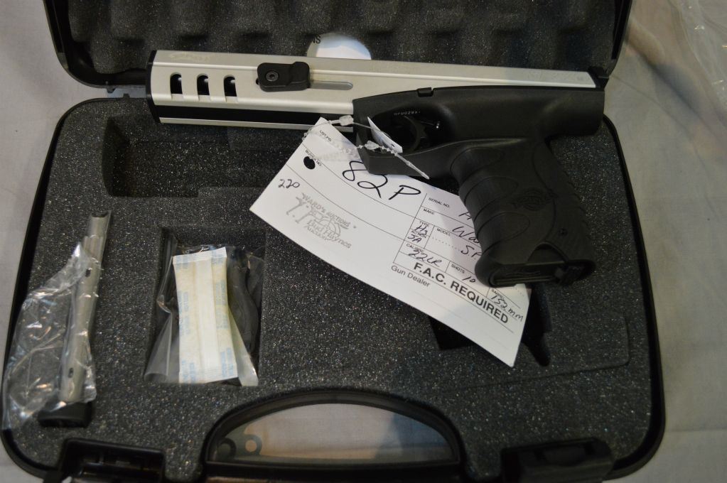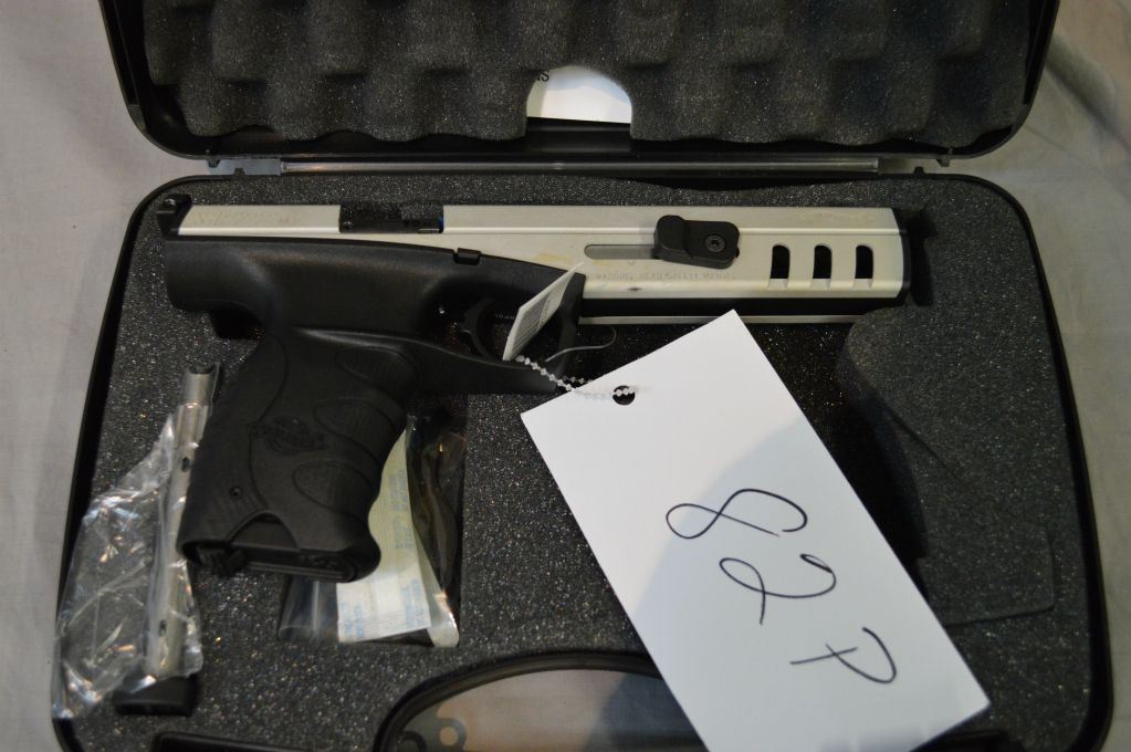 Walther Model SP22 .22 LR cal 10 shot Semi Auto Pistol w/ 152 mm bbl [ appears as new in orig foam lined plastic case , unfired , Polymer frame w/ brushed metal on sides, adjustable rear sight, c/w extra mag, tools, etc. ] Ser # HP 002991 Restricted Handgun Cert # 18412940
