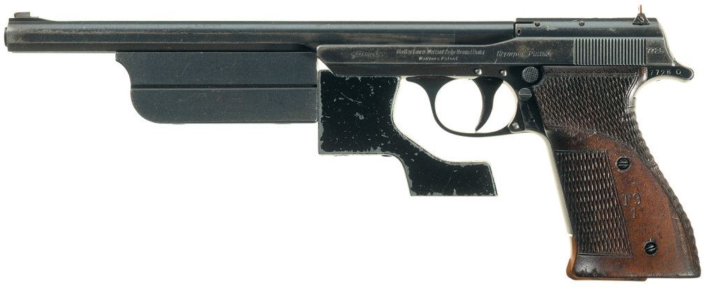 The underside of the barrel and frame are fitted with counter weights, and the left grip panel is marked "F9/1".