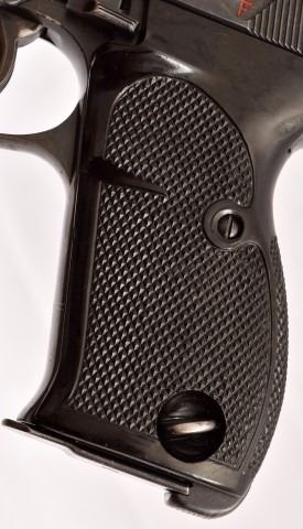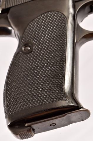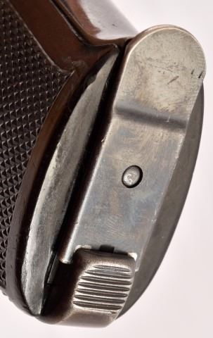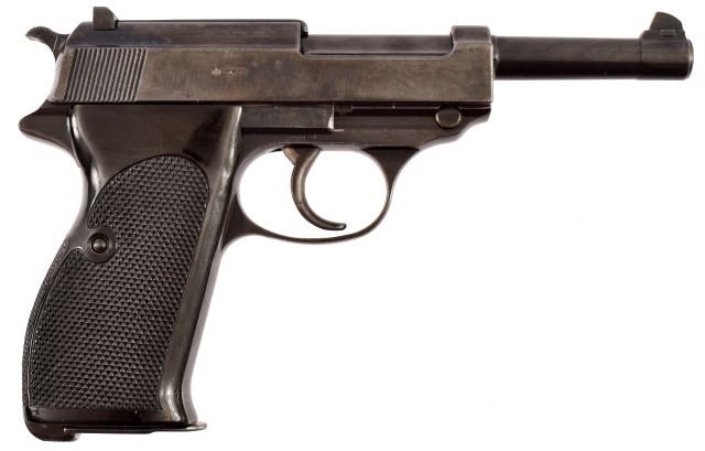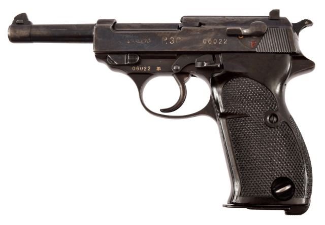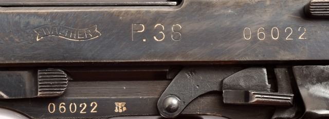 Walther P.38 9mm caliber pistol. Zero Series 3rd Issue. Serial #06022. Bore is excellent. Numbers match except magazine which is a Zero Series magazine but not for this gun. Gun has a blemish on top of barrel and small spot on top of slide. Grips are excellent. Gun has two 359 Waffenamts on right side of slide and 359 Waffenamt on left side of frame. Very fine Zero Series.