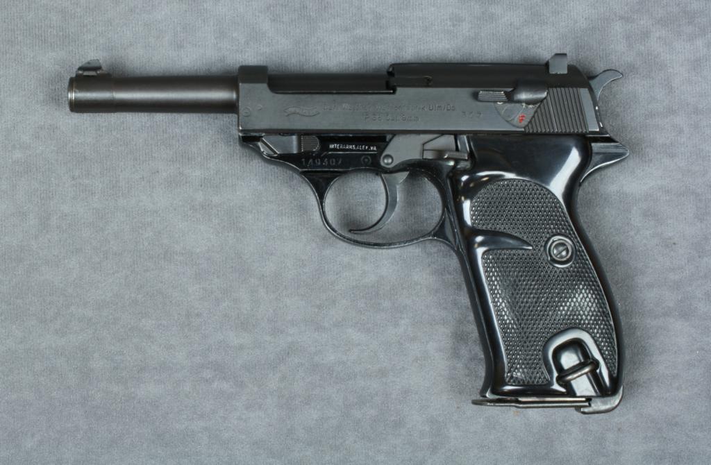 Walther P38 DA semi-auto pistol, import-marked, 9mm cal., 4-3/4” barrel, black finish, black check