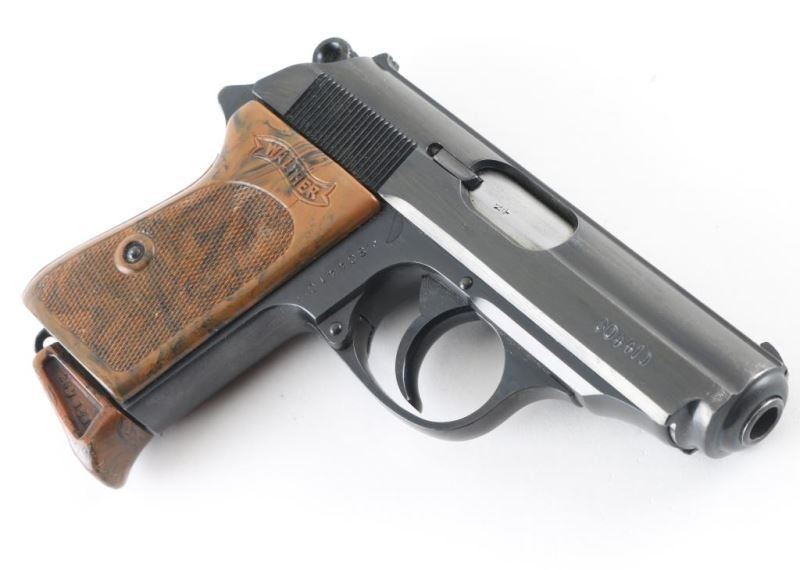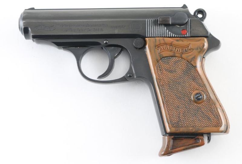 Pistol. Semi-Automatic. 7 Rd Magazine. Straight blow-back action. "RZM" Third Reich era Pistol. This pre-war pistol was only available between 1934 and 1936. The RZM pistols were presented to Nazi party leaders during the late 30's. Correct pre-war Crown/N proofs on right frame and barrel. Left slide stamped with Walther address, "Zella Mehlis" Patent, caliber in two lines, followed by "Mod. PPK. "RZM in a circle is next to that. Serial number matched on slide and frame. 3.3" barrel. Ring hammer. Early 90 degree safety. Bore appears very good/bright but has some cosmoline in it. Chamber and mag also have cosmoline. Will clean up. Pistol has been re-blued at some point. Some pitting on the left slide that has been blued over. Blued finish is about 97% with edge wear/scratches. Brown plastic checkered "Walther" grips are good with a small crack at the bottom of the right panel. Mismatched magazine "267141", has a chip out of it on the left Brown plastic finger extension. Magazine stamped with "Walther" banner. NRA Condition-Very Good/Re-Blued. C&R Firearm.