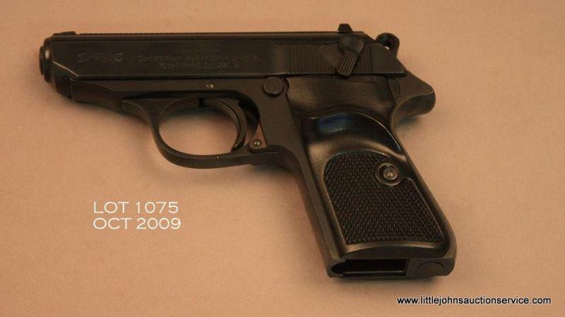 Walther PPK/S semi-auto pistol in .22lr #136782, French made for Walther by St. Etienne (marked on bolt), and imported by Interarms. 3 ¼ BBL. Very good blued finish, bore, and black checkered grips. Includes one mag. Very Good Condition.Est. $250-$500