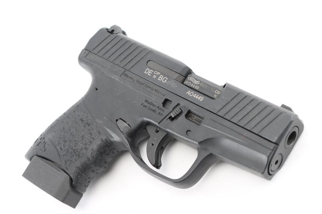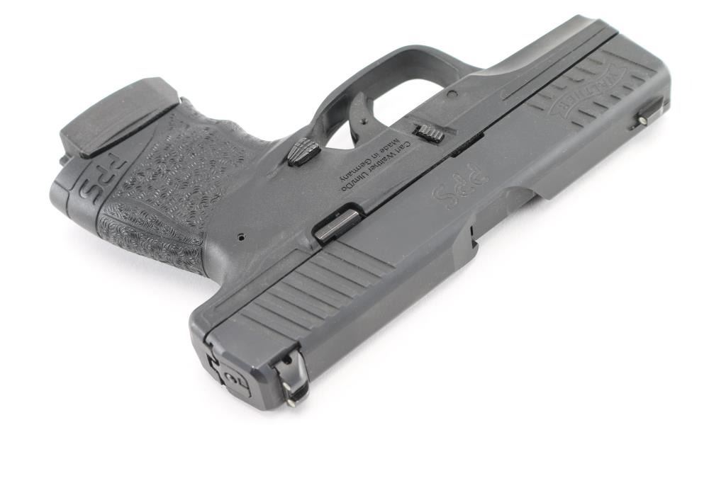 Quality German made subcompact striker-fired semi-automatic pistol chambered in 9x19mm. Features a matte black Tenifer finish, 3.2" barrel, three-dot sights, trigger safety, push button magazine release, 6 round factory magazine, cocked indicator, and black polymer frame. Includes the original factory hard case with documents, and spare factory magazine. Pistol is like new, bore ios pristine. NRA Condition-Perfect in box. Modern Firearm..