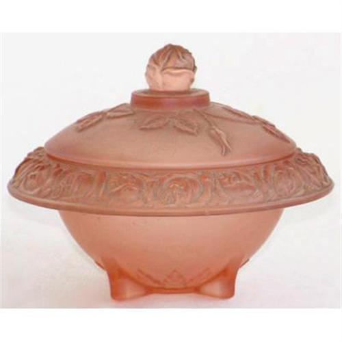 <table width="100%" border="0" cellspacing="0" cellpadding="4"><tr><td><em> </em></td></tr><tr> <td width="100%"> Produced by Walther Glass and their Rosen pattern this superb pink satin glass Art Deco footed powder jar has a rose bud finial with rose leaves adorning the lid. The top of the jar is surrounded with a highly detailed frieze of roses covering a one inch rim - detailed leaves surround the four feet. This exquisite, very high quality, Art Deco pink satin glass powder jar measures 5? wide x 4? tall with both the jar and lid in excellent condition </td></tr><tr> <td> </td></tr><tr> <td>Reference #: tsPSGADJRBPJ1</td></tr><tr><td>Condition:Excellent</td></tr><tr><td>Year:1920-1930s</td></tr><tr><td>Title:Walther ROSEN Pink Satin Glass Powder Jar</td></tr><tr><td>Location:Orlando, Florida</td></tr></table>