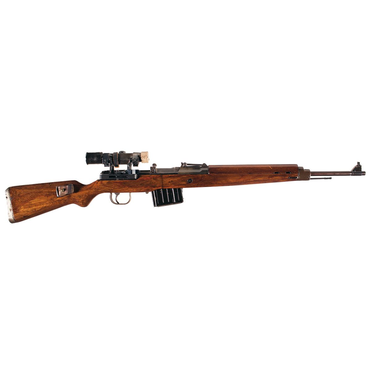 Original GWZF4 scope, reproduction scope mount, scarce early machined receiver, duffle bag cut through center of stock. With 8 MG13 magazines total, two magazine pouches, and one G43 magazine.