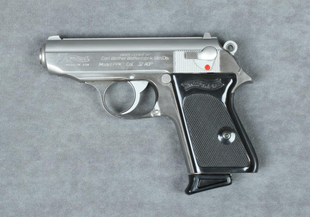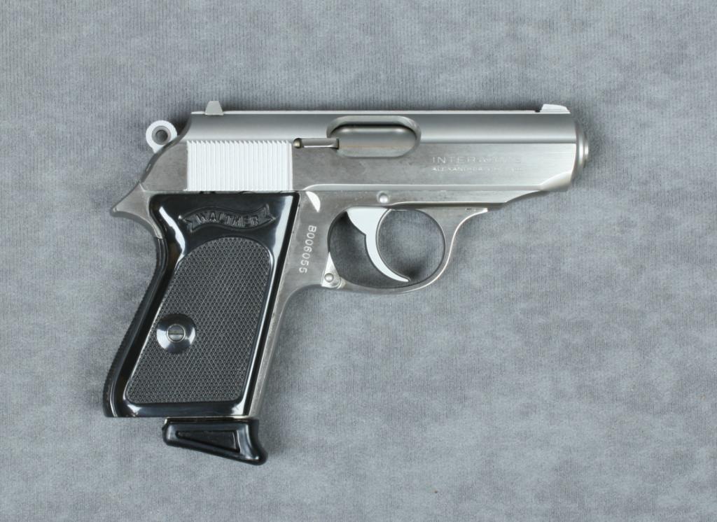 Walther licensed Interarms Model PPK DA  semi-auto revolver, .32 cal., 3-1/4” barrel,  stainless steel, checkered black plastic  grips, #B006055. This gun is in overall  excellent condition showing little use, finebore, action, markings and grips.  Est.:   $350-$700.