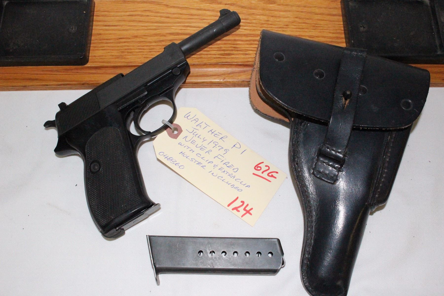 PI July 1979; Never Fired; w/Clip, Holster & Extra Clip; 9mm cal.; S/N048360 - Restricted Firearm