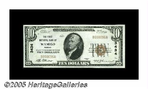 <B>Wamego, KS</B></I> - $10 1929 Ty. 1 <B>The First NB</B></I> Ch. # 3434<BR>A <B>Choice Crisp Uncirculated</B></I> example ideal for type.