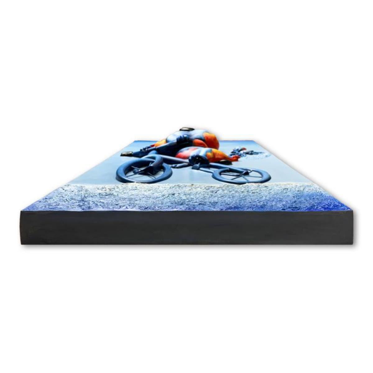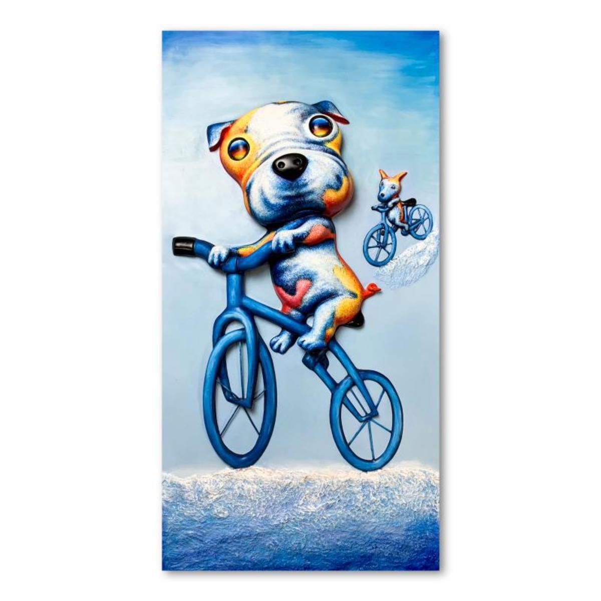 Wang, "Biking Brothers" Hand Painted Limited Edition Bas Relief Sculpture, Numbered 1/5, Hand Signed