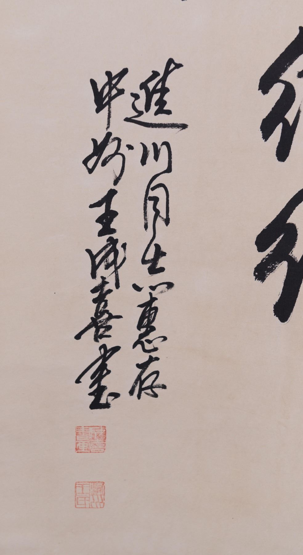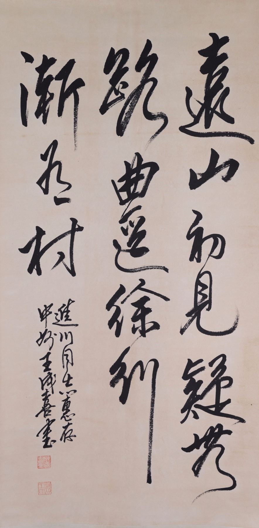 Calligraphy; Chinese ink on paper; hanging scroll; signed Wang Cheng Ji and inscribed with two artist seals; 99 cm x 51 cm