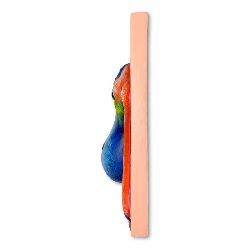 "Homer (Pink)" is a hand painted limited edition, dimensional art, bas relief sculpture by Wang. This piece is numbered 9/99, is hand signed in verso, and comes with a letter of authenticity. Measures approximately 13" x 10".