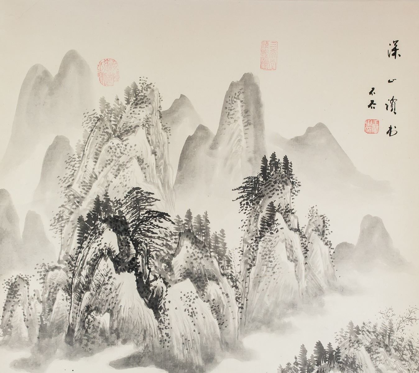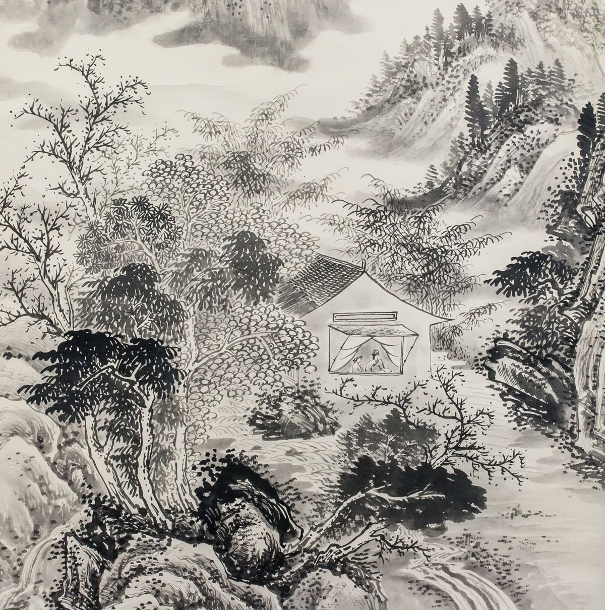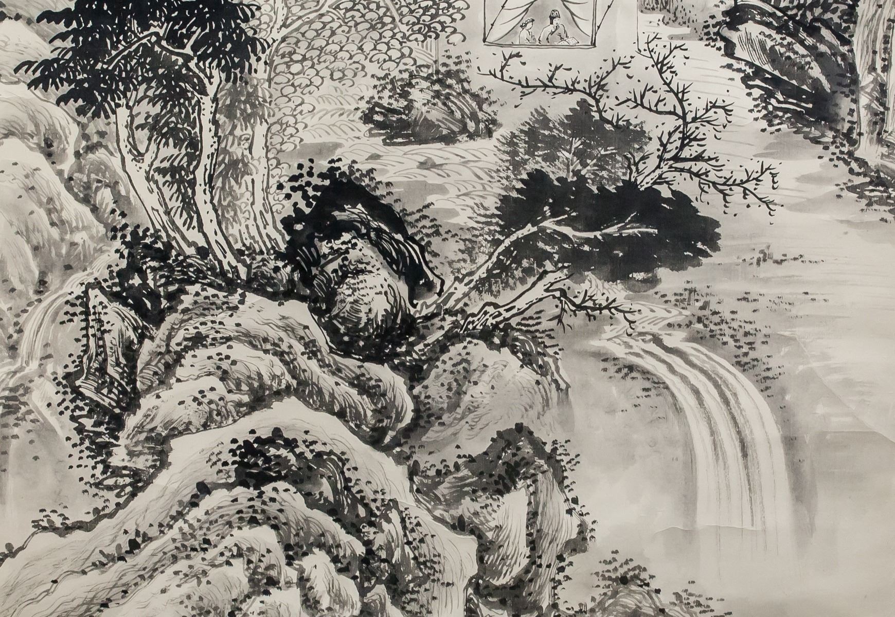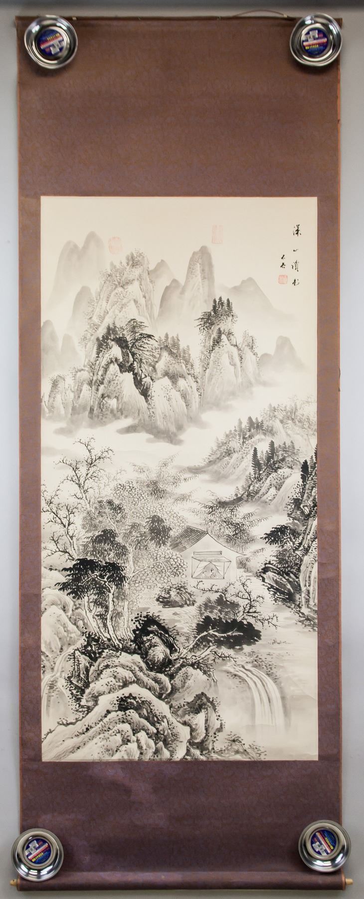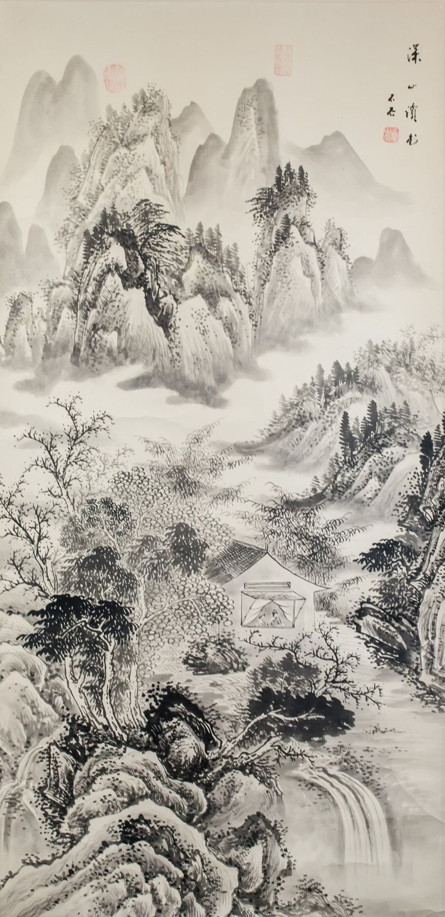 Ink on paper, hanging scroll. Featuring mountainous landscape. Signed Wang Hui (1632-1717, Chinese), inscribed with 1 artist's seal and two collectors' seals.
