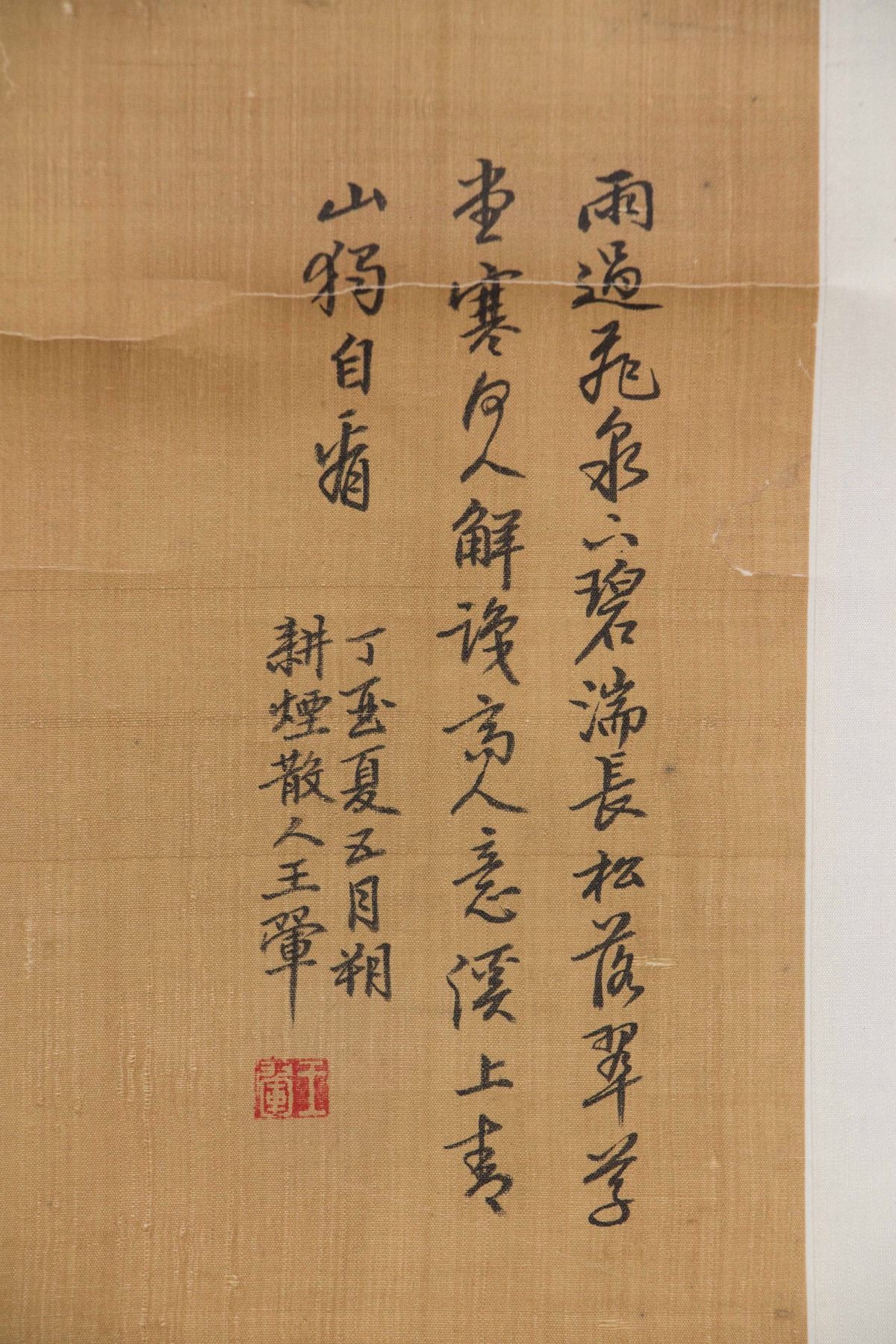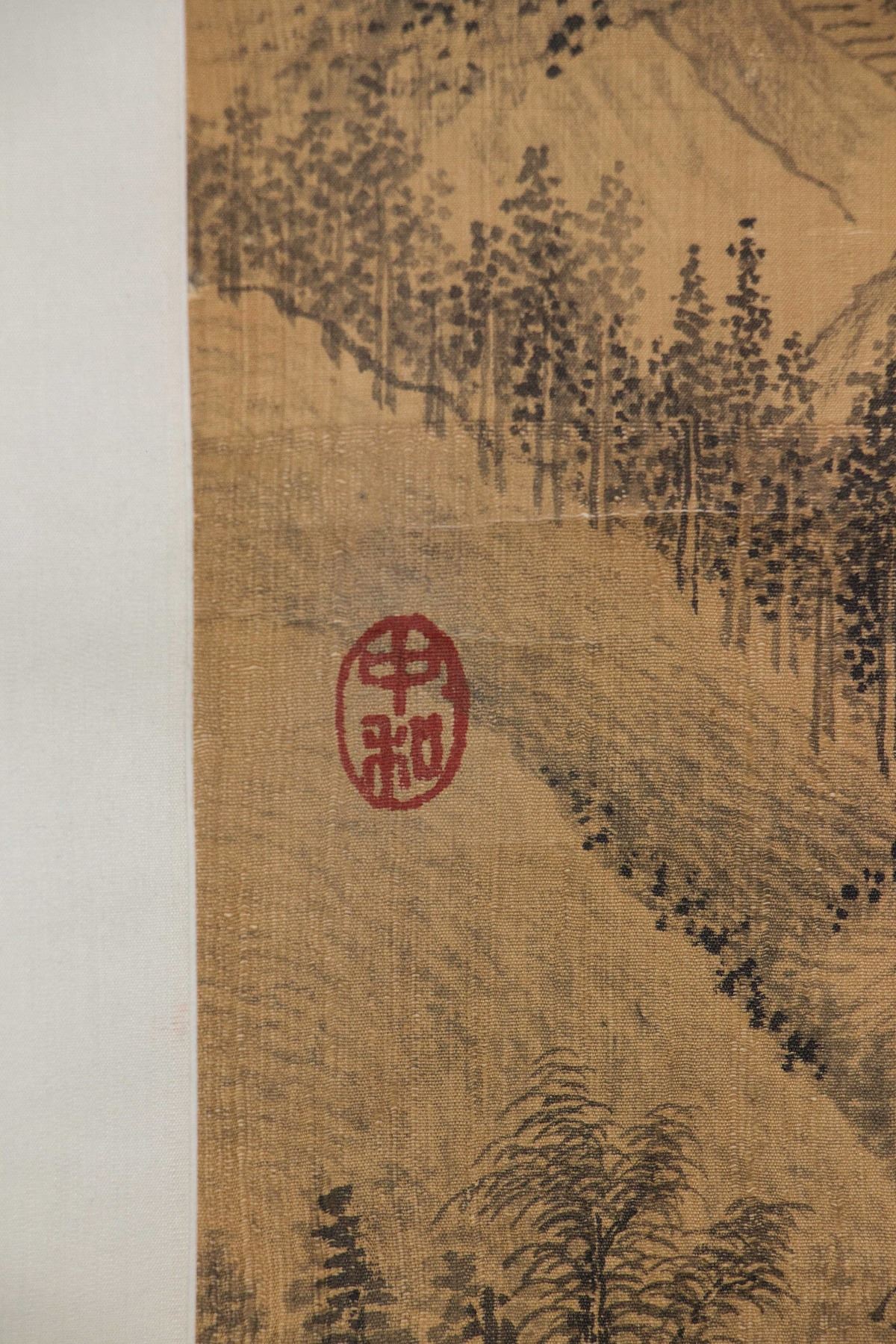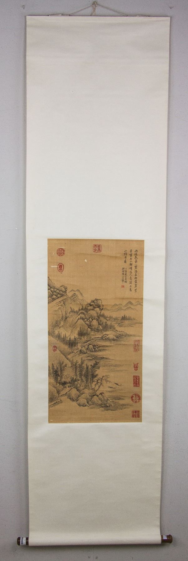 Mountainous landscape; Chinese ink on silk; hanging scroll; signed Wang Hui (1632-1717); inscribed with 1 artist seal; inscribed with 9 collectors' seals; 70 cm x 36 cm