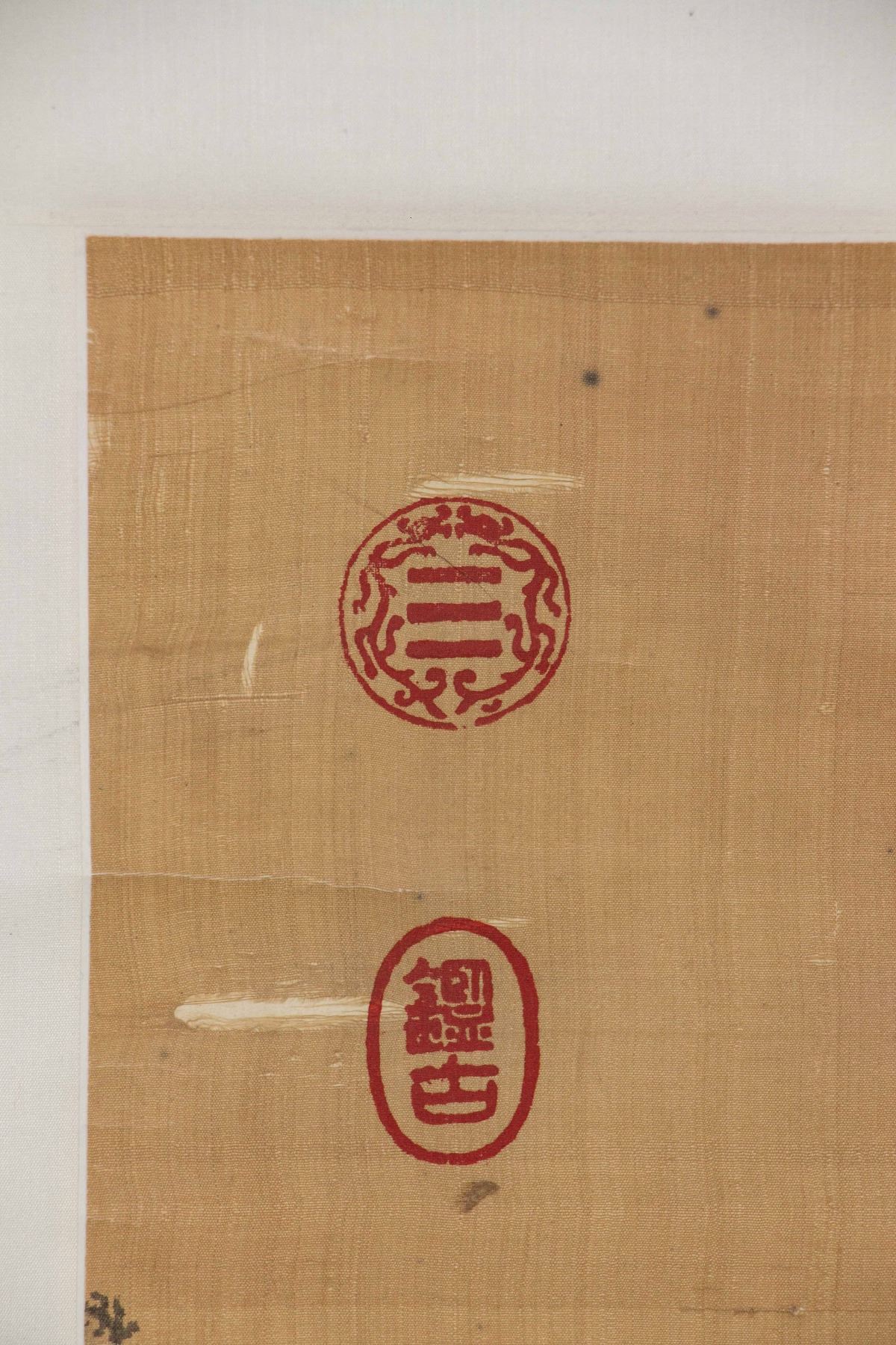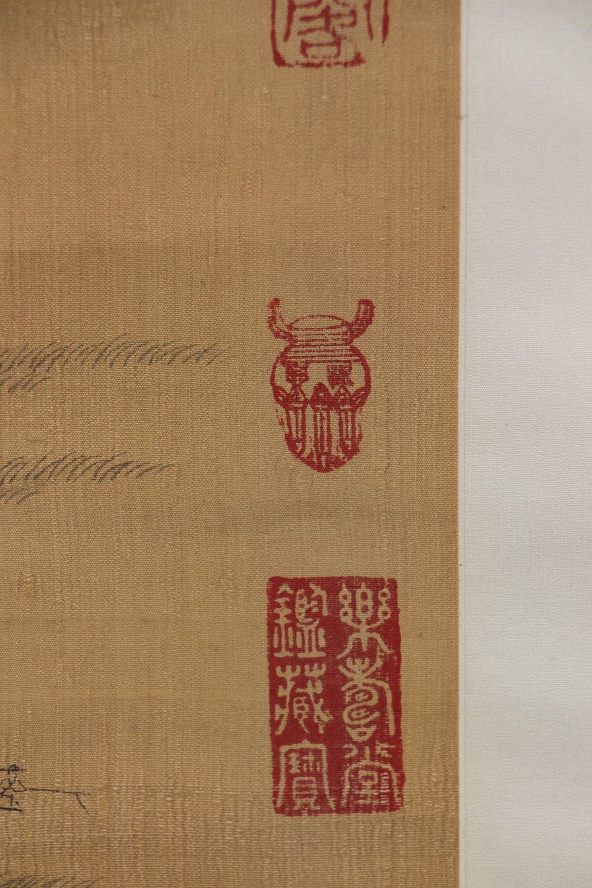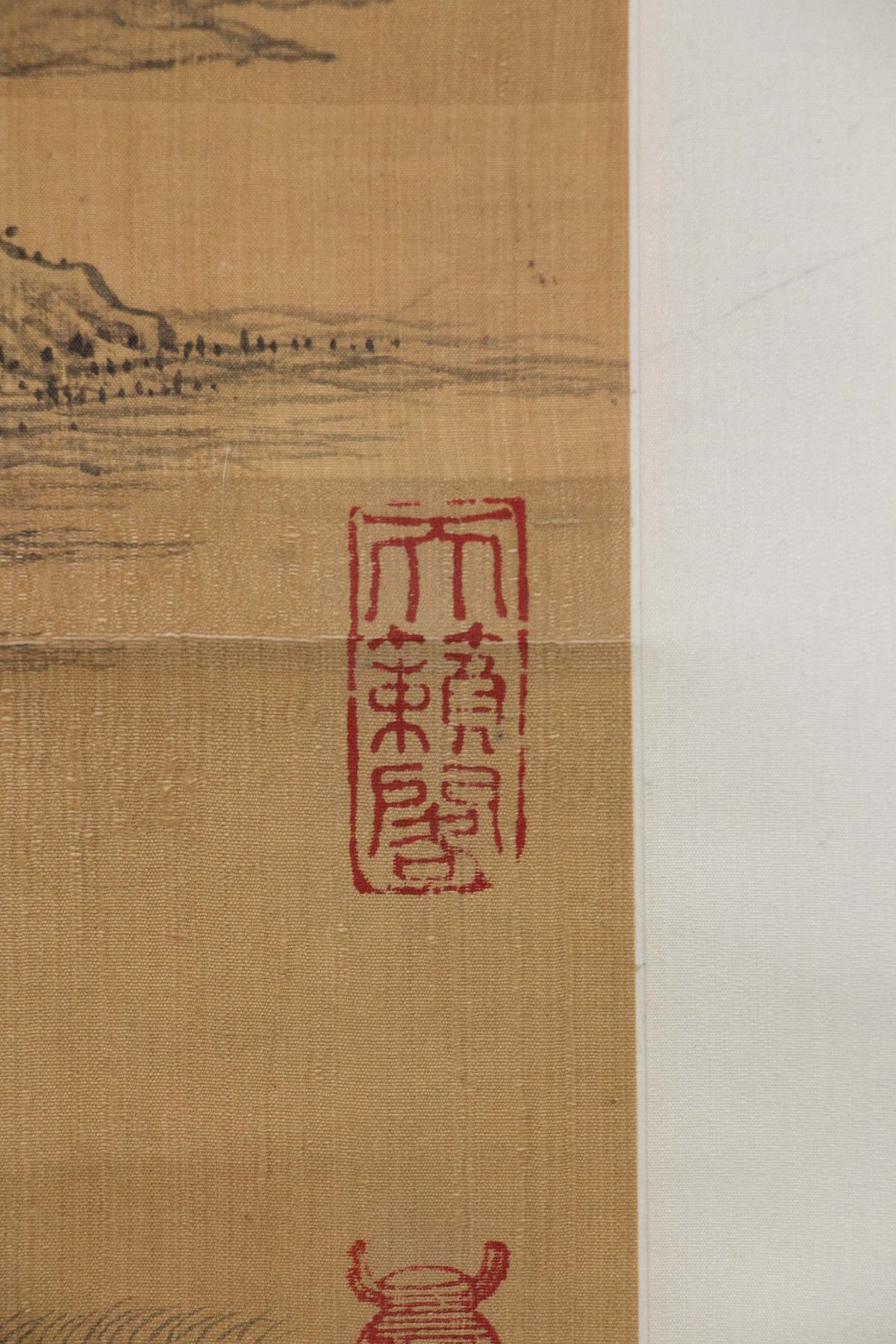 Mountainous landscape; Chinese ink on silk; hanging scroll; signed Wang Hui (1632-1717); inscribed with 1 artist seal; inscribed with 9 collectors' seals; 70 cm x 36 cm