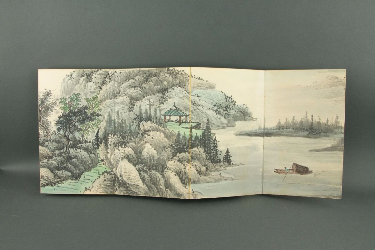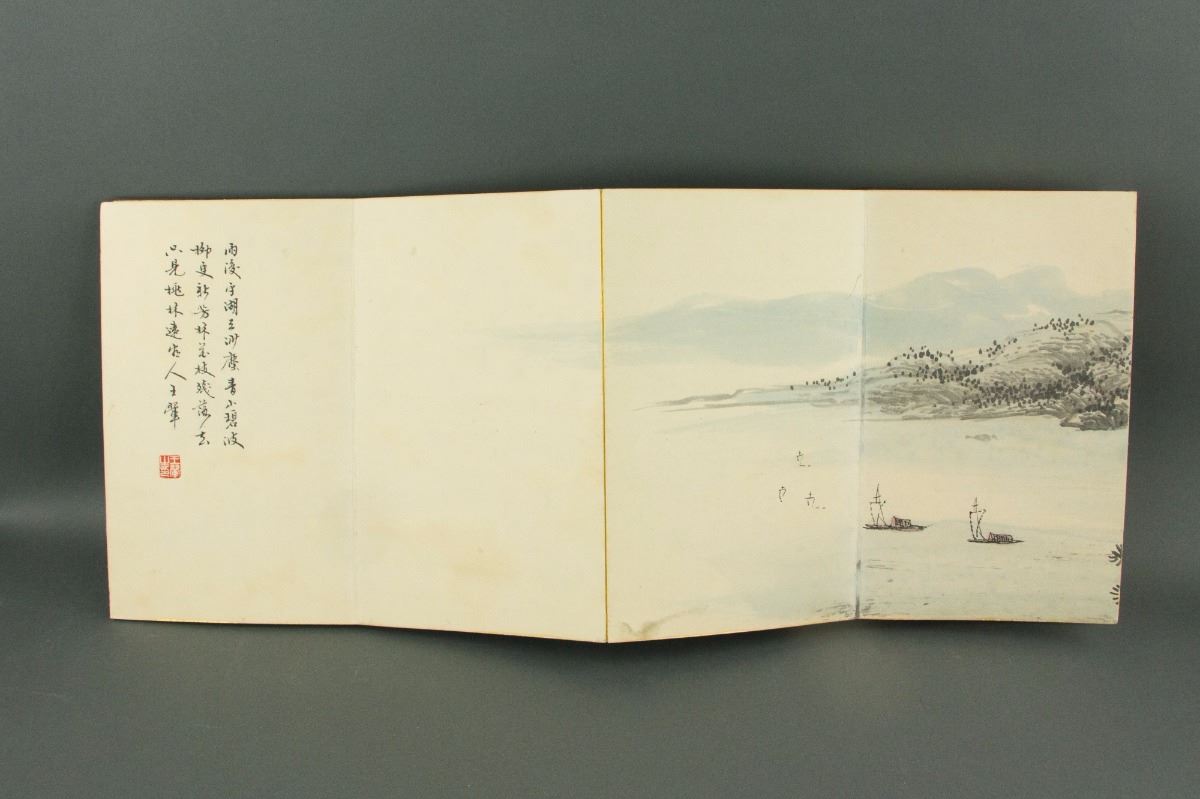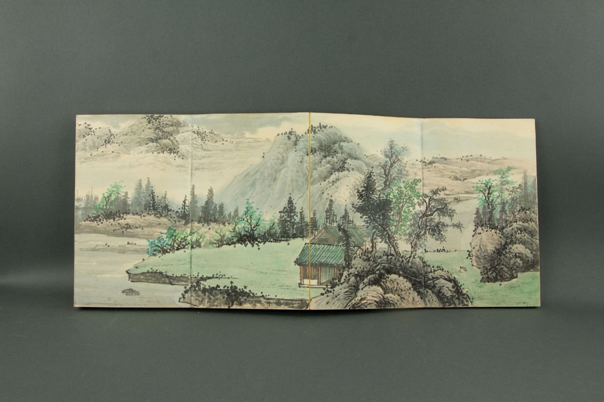 Riverside village and mountainous landscape; Chinese ink and watercolour on paper; mounted in booklet with wood cover; signed Wang Hui (1632-1717); inscribed with one artist seal; 26 cm × 15.5 cm, 1114 grams