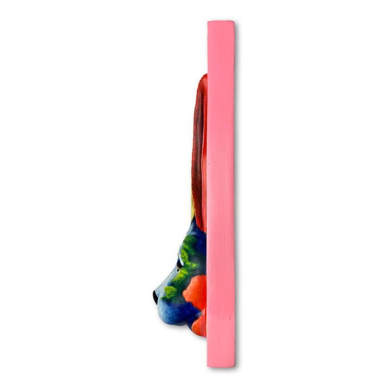 "Rosy (Pink)" is a hand painted limited edition, dimensional art, bas relief sculpture by Wang. This piece is numbered 5/99, is hand signed in verso, and comes with a letter of authenticity. Measures approximately 13" x 10".