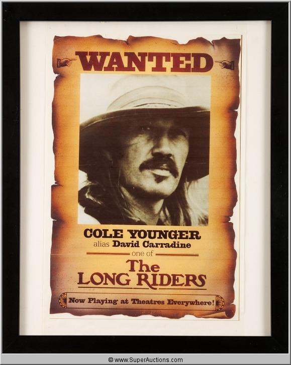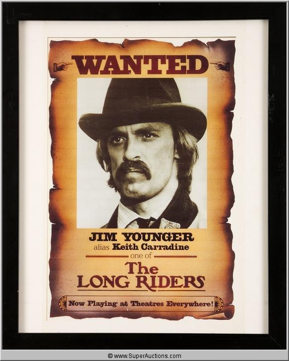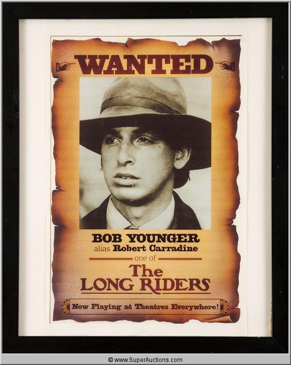 Framed Poster Prints of The Long Riders / (1) Wanted Bob Younger alias Robert Carradine one of The Long Riders / (1) Wanted Jim Younger alias Keith Carradine one of The Long Riders / (1) Wanted Cole Younger alias David Carradine one of The Long Riders / L 18" x W 1" x H 22" each
