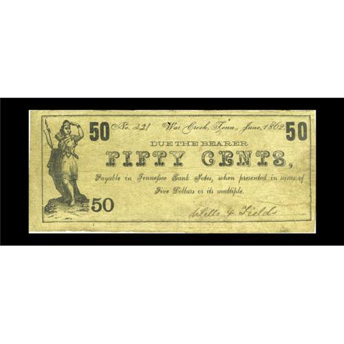 War Creek, TN- Wells & Fields 50¢ June, 1862Here is a v