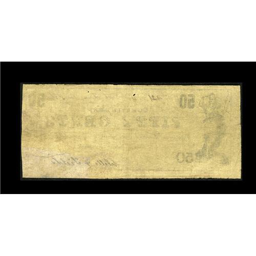 <B>War Creek, TN- Wells & Fields</B></I> 50¢ June, 1862<BR>Here is a very rare piece of Tennessee scrip from a most interestingly named community. <B>Fine,</B></I> with a reverse tape repair to the bottom right corner.