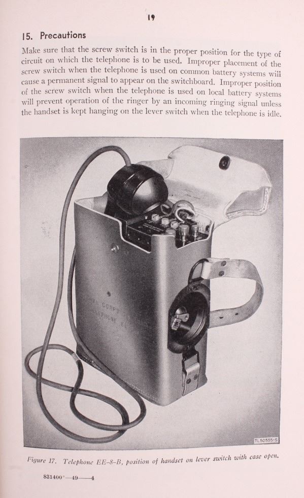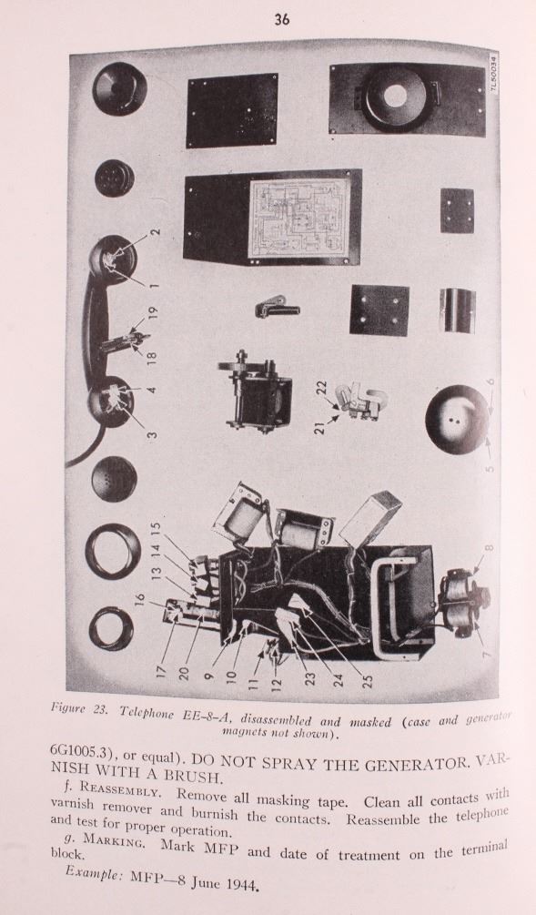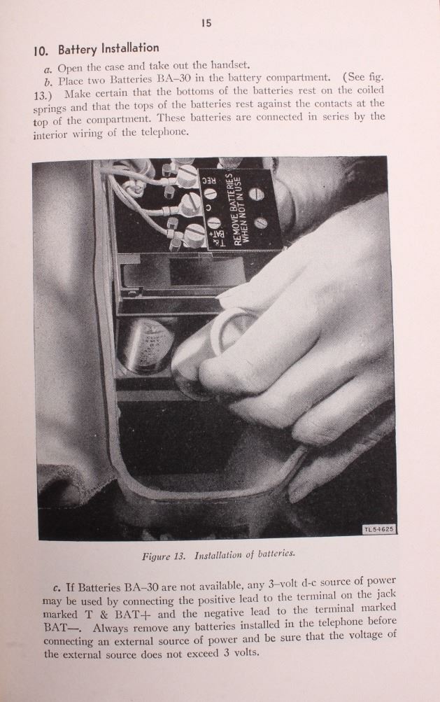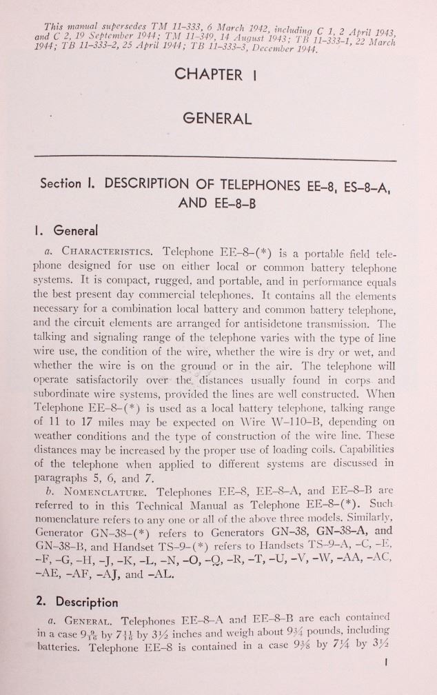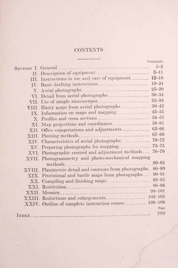 In this lot are two technical manuals from the war department in November of 1940 and March of 1945. The first of the two technical manuals is TM 5-230. This technical manual is for topographic drafting. Topographic drafting entails making maps based on aerial surveillance. The second technical manual is TM 11-333. This TM explains telephones and how to repair and operate them. These TMs are 9 1/4" x 6" x ¼”.