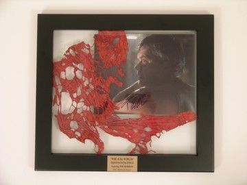 From Steven Spielberg's haunting remake of the classic "War of the Worlds" (2005), based on H.G. Wells classic story, these are carefully cut pieces from the screen use original alien tentacles. They are dramatically displayed in a custom made transparent plexiglass framed display, and includes a personally signed production photo of co-star Tim Robins, as his character of Harlan Ogilvy from the movie. Comes with a COA for both the screen used tentacles and Robbin's autograph. (Custom display box is approx. 13"x13").