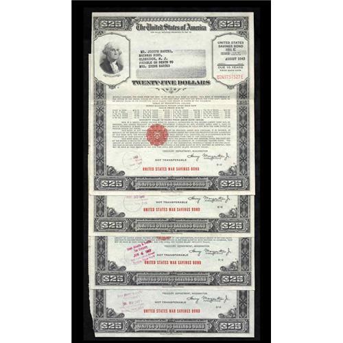 War Savings $25 Bond Four Examples. War Savings $25 Bond Four Examples.
