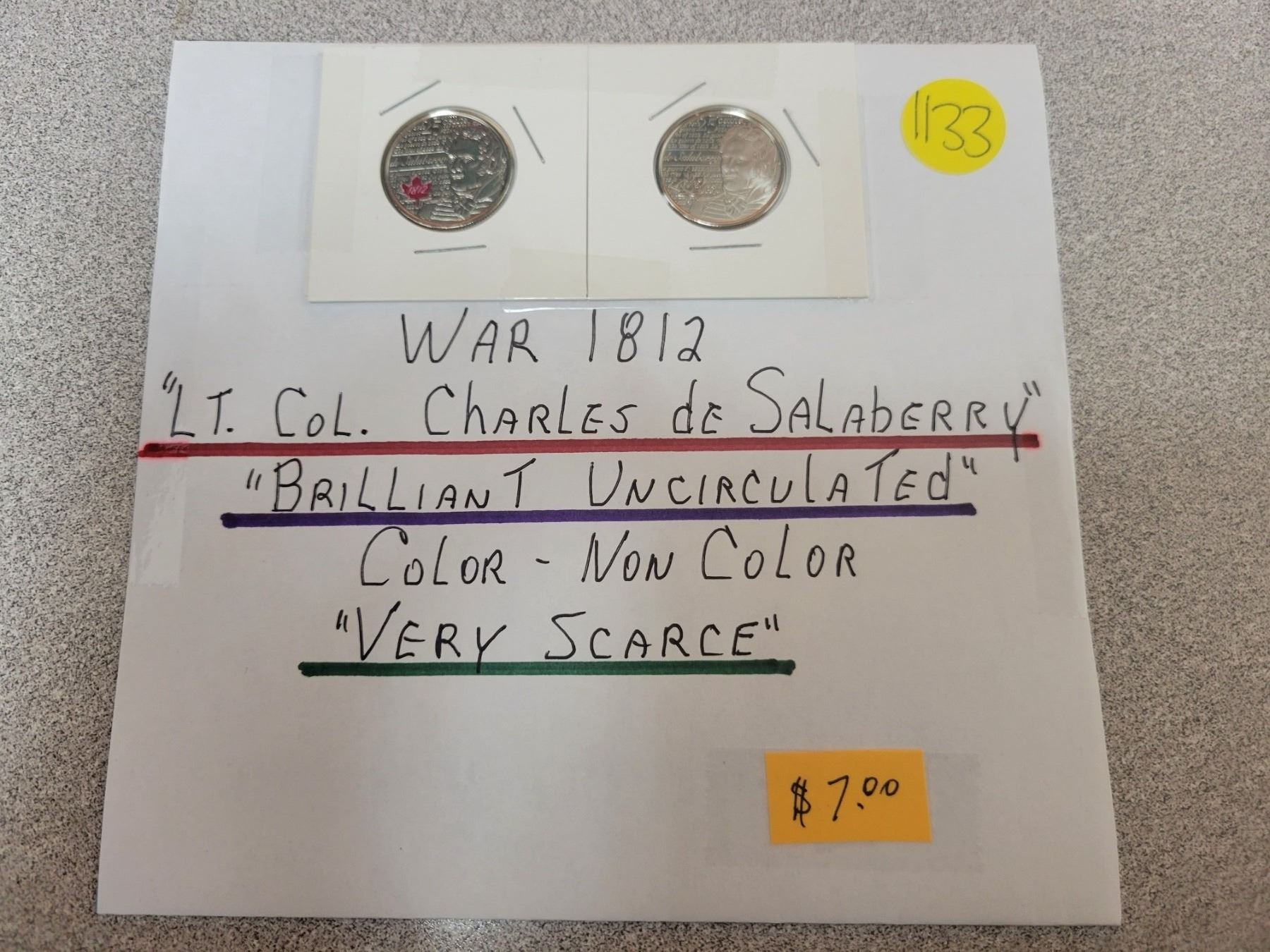 War of 1812 'Lt Col. Charles de Salaberry' 25¢ coins - color and non color
