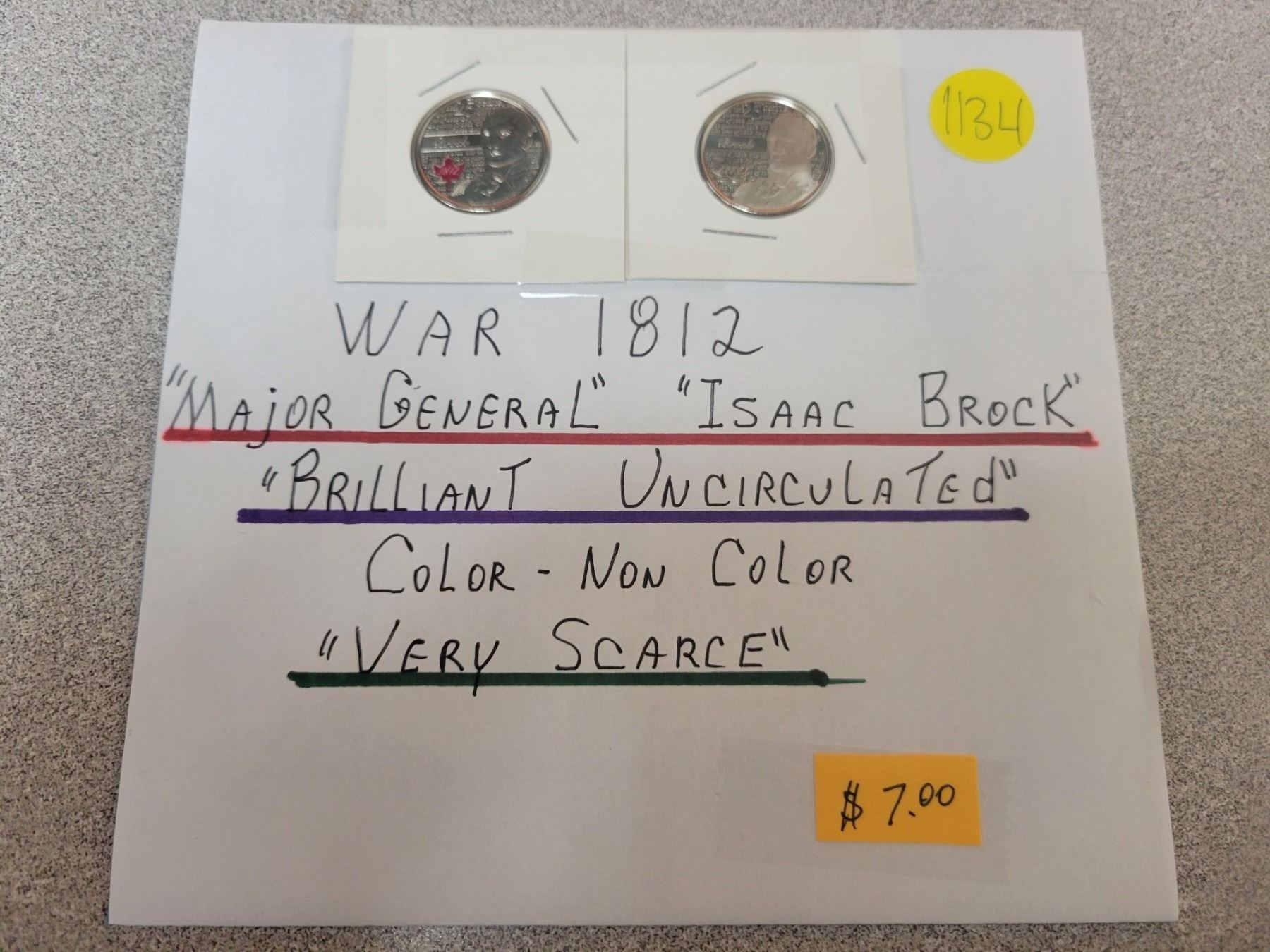 War of 1812 'Major General Isaac Brock' 25¢ coins - color and non color
