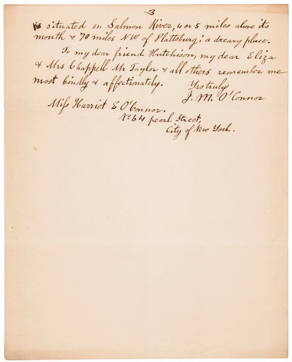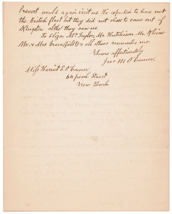 Important Historical Archive Consisting of THREE (3) Autograph Letters Signed, “Jno M. O’Connor”, all (3) measure 8” x 10”, each addressed to his wife in New York City, boldly written in rich brown ink and easily readable on clean “HURDS NEW YORK” watermarked wove period paper. These Three Letters report extensive firsthand accounts of military action during the War of 1812 Period. This exceptional content (3) Letter Archive Includes: