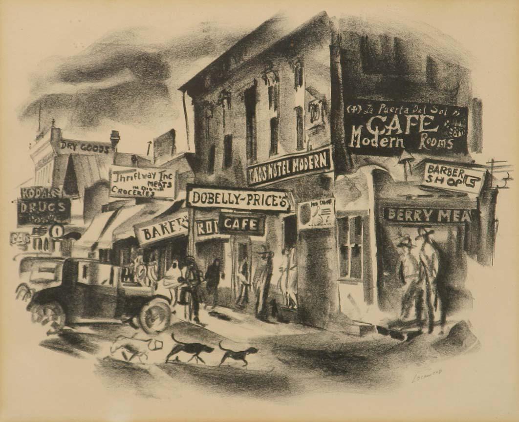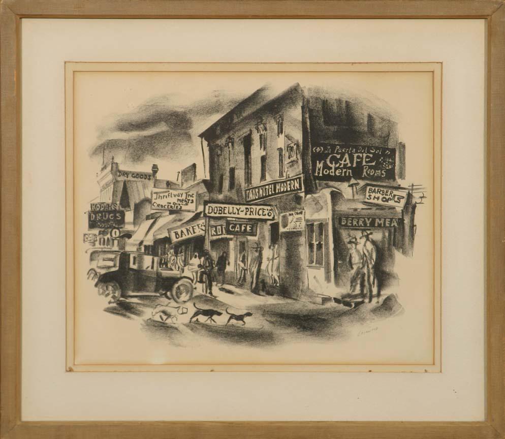 Ward Lockwood (1902-1977). Taos Signs. 13" x 15" lithograph. Pencil signed lower right. (est $300-500). Additional Info: Art Institute of Chicago tag attached. For condition reports please visit: www.auctioninsantafe.com/cr2011.pdf