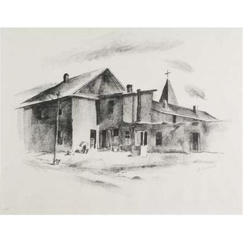Ward Lockwood (1894-1963) Stone Lithograph "View from the Street" 12/25 Pencil signed lower right 10 3/4" x 13 1/2"