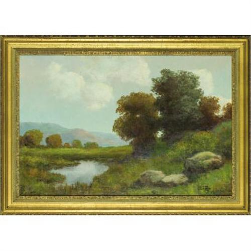 <B>WARD SHADOMY (American, 20th Century)</B></I><BR><I>Summer Landscape</B></I><BR>Oil on canvas<BR>24 x 36 inches (61.0 x 91.4 cm)<BR>Signed lower right: <I>Ward Shadomy</B></I><BR> <B>Condition Report:</B> Craquelure throughout, principally in sky; three horizontal lines of inpainting, each approximately 1 inch long in lower left quadrant.<BR><BR><b>Shipping:</b> Framed - without Glass, Medium (<a target="_blank" href="http://www.heritageauctions.com/common/shipping.php">view shipping information</a>)
