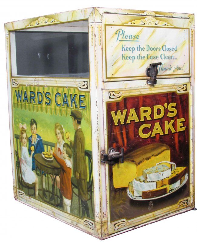 Ward's Cake Tin Litho Store Display Case. Very good original condition. 17 X 20 1/4 X 13 inches.