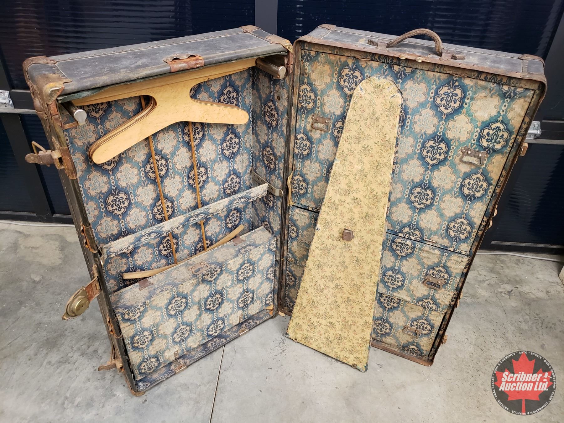 Wardrobe Steamer Trunk "Canada Trunk & Bag Limited" (Note: No Key / No Rod for Iron Board) (14"W x 40-1/2"H x 22-1/2"D) (SEE PICS!)