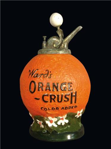 Wards Orange Crush Syrup Dispenser, period style pump. Good original condition, no chips or cracks. 15 inches tall.