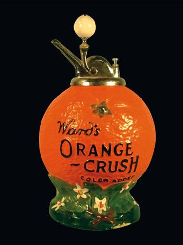 Wards Orange Crush Syrup Dispenser. Minor paint loss on base and small chip on lip, replacement pump otherwise very good condition. 14 inches tall.