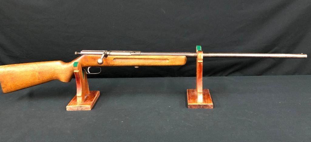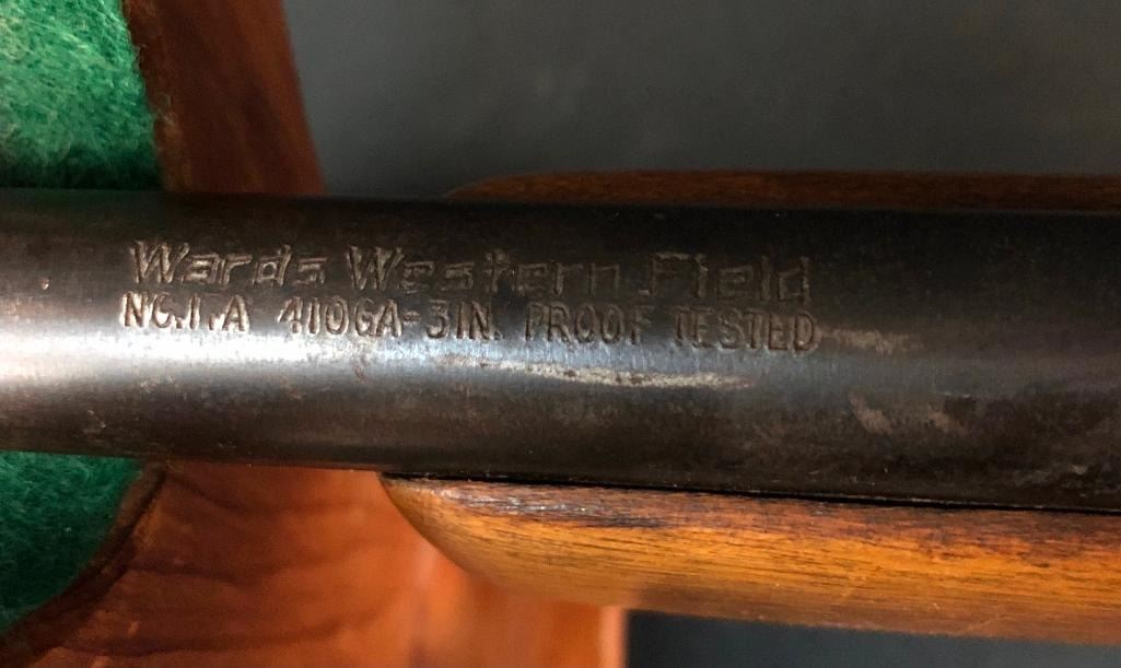 For your consideration is this, Wards Western .410 gauge bolt action shotgun. It has a 22" barrel, plain wood stock and forearm and is in fair condition. Maker: Wards Western Field. Serial number not found. Approx. Age: Fairly modern. Size: Barrel measures 22 inches. Condition: Fair for its age, wear expected and please note repair to end of bolt. Please look closely at the pictures - they are an important part of our description. Shipping: There will be a $25 handling / packaging fee for shipping this lot. The actual cost of postage will be added on top of that. BUY IT NOW: If you would like to buy this item now without waiting for the auction to end (this option is only available up to 48 hours before the auction starts to close), the “Buy it Now” price is the high estimate of this lot. If you would like to end the auction early and pay the high estimate (plus applicable fees), please contact us by phone or email and reference this lot number. *****This firearm requires an FFL Transfer*****